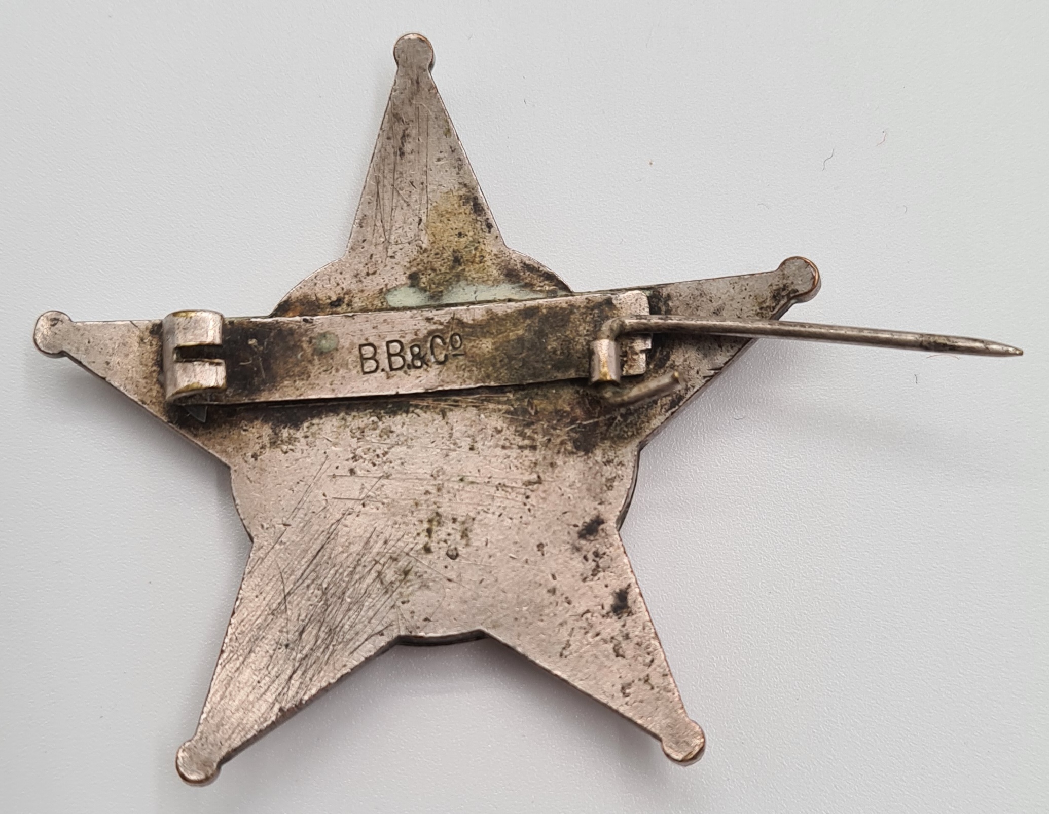 המדליה, כוכב 5 קצוות אמייל אדום פליז מצופה ניקל עם סהר מוגבה.